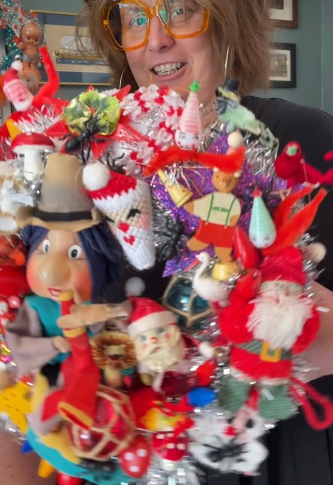 Bins apon bins of vintage and retro pieces from festive birds, bells and bows to novelty toys and hundreds of vintage, retro and customized Christmas items, florals, pom poms, felt, ribbons and so much more will be yours to incorporate into your wreath during the workshop.